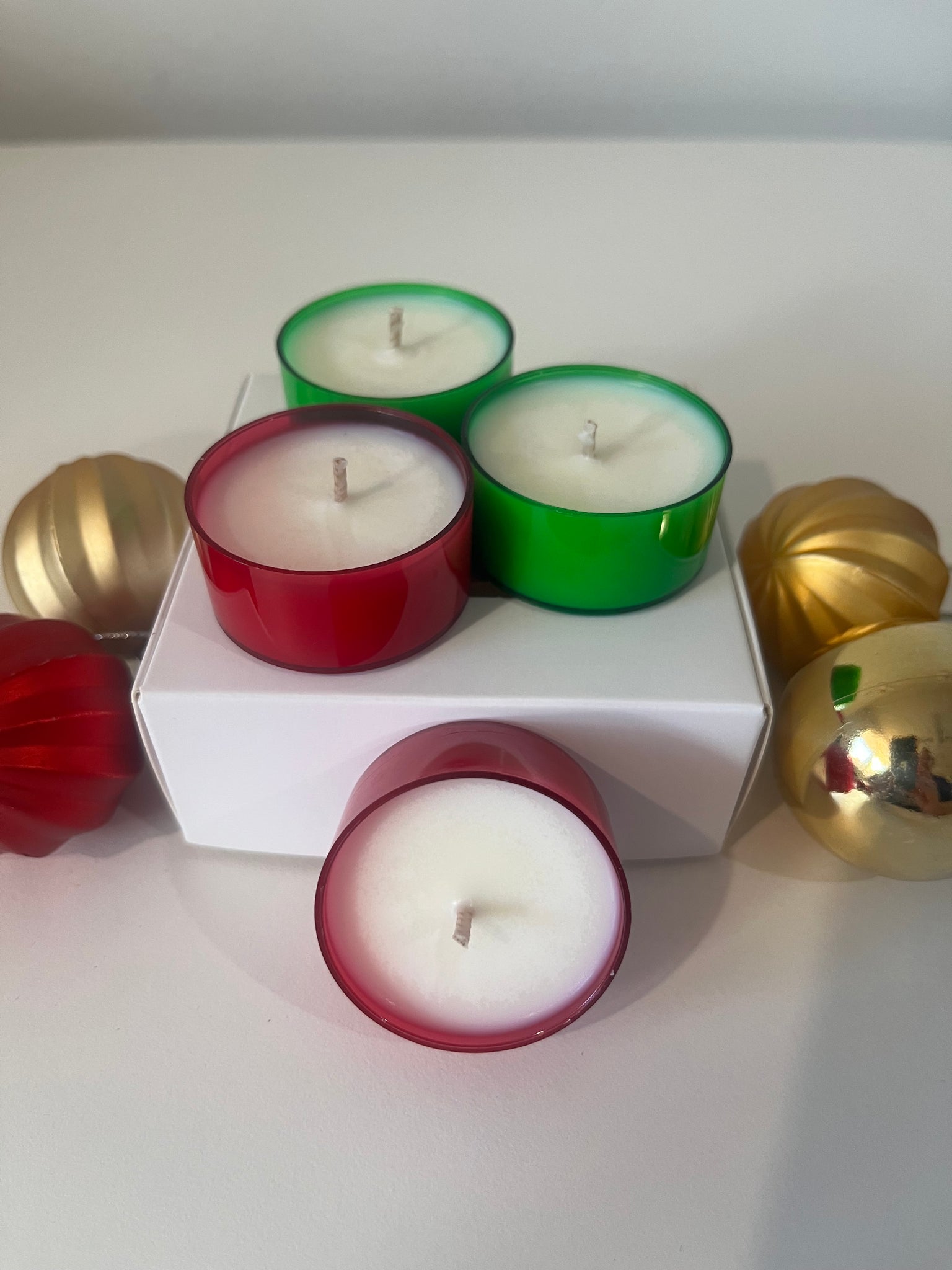 - either 6 tea lights wrapped in xmas design (designs may vary from box to box) or brighten up your space with the festive red and green tea light containers. New this year and very popular!