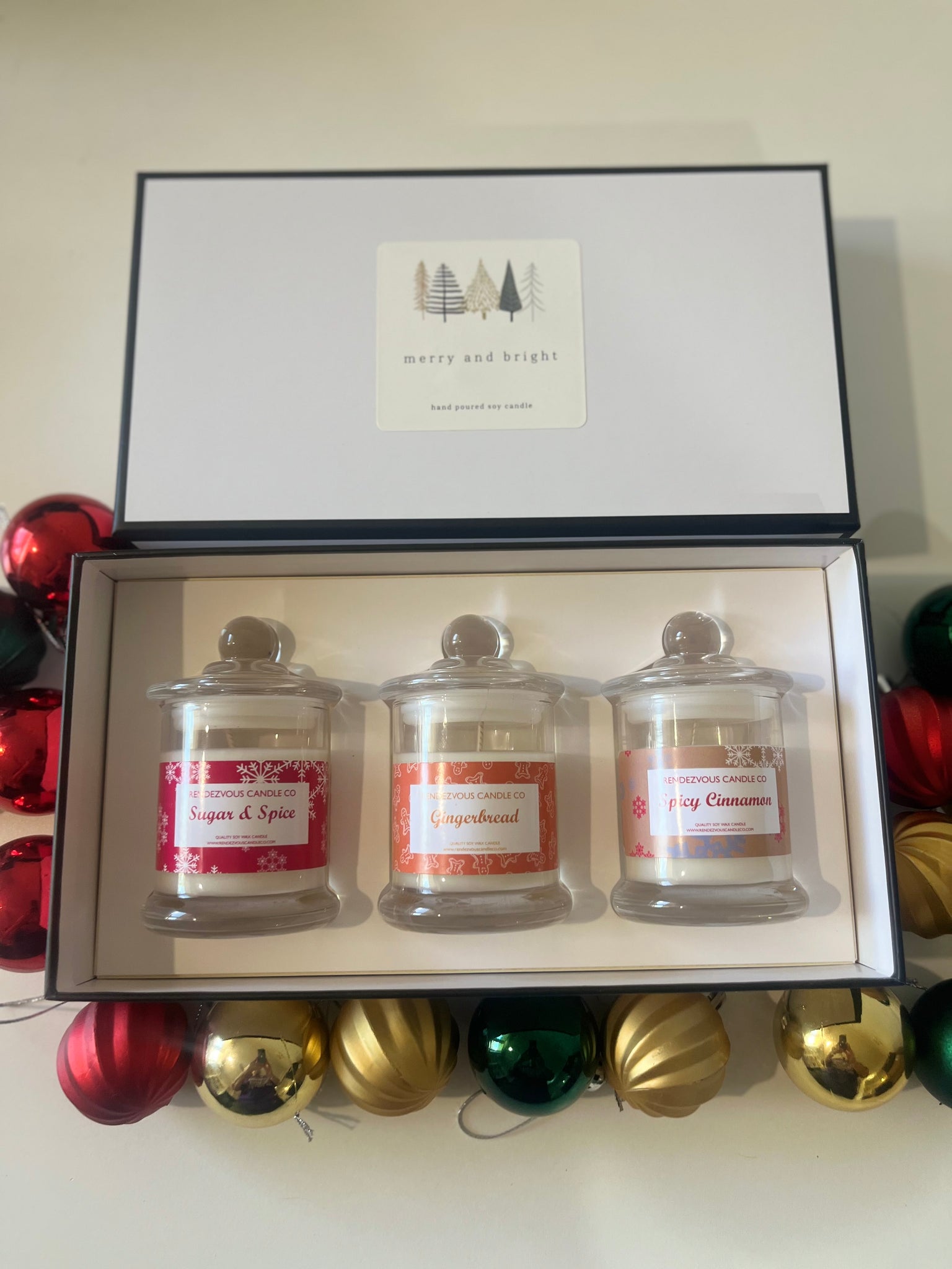 Why not try a trio gift set, which includes Gingerbread as one of the options! A beautifully presented gift box containing three xmas scents in the gorgeous petite glass jar. This makes a beautiful gift!